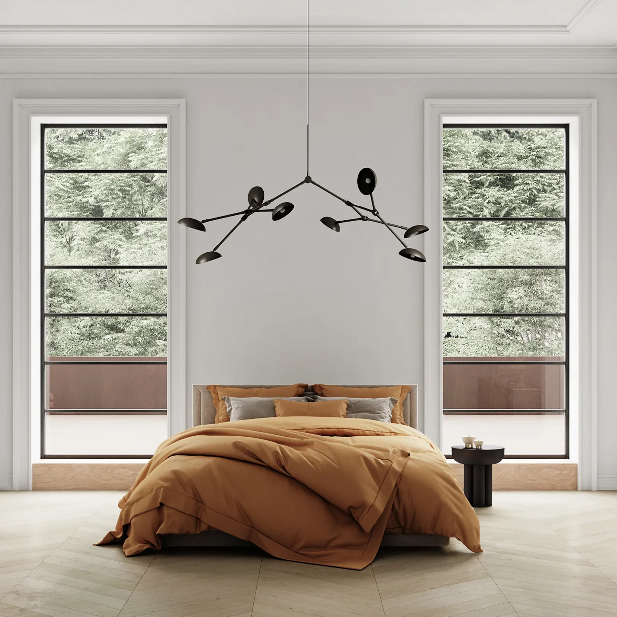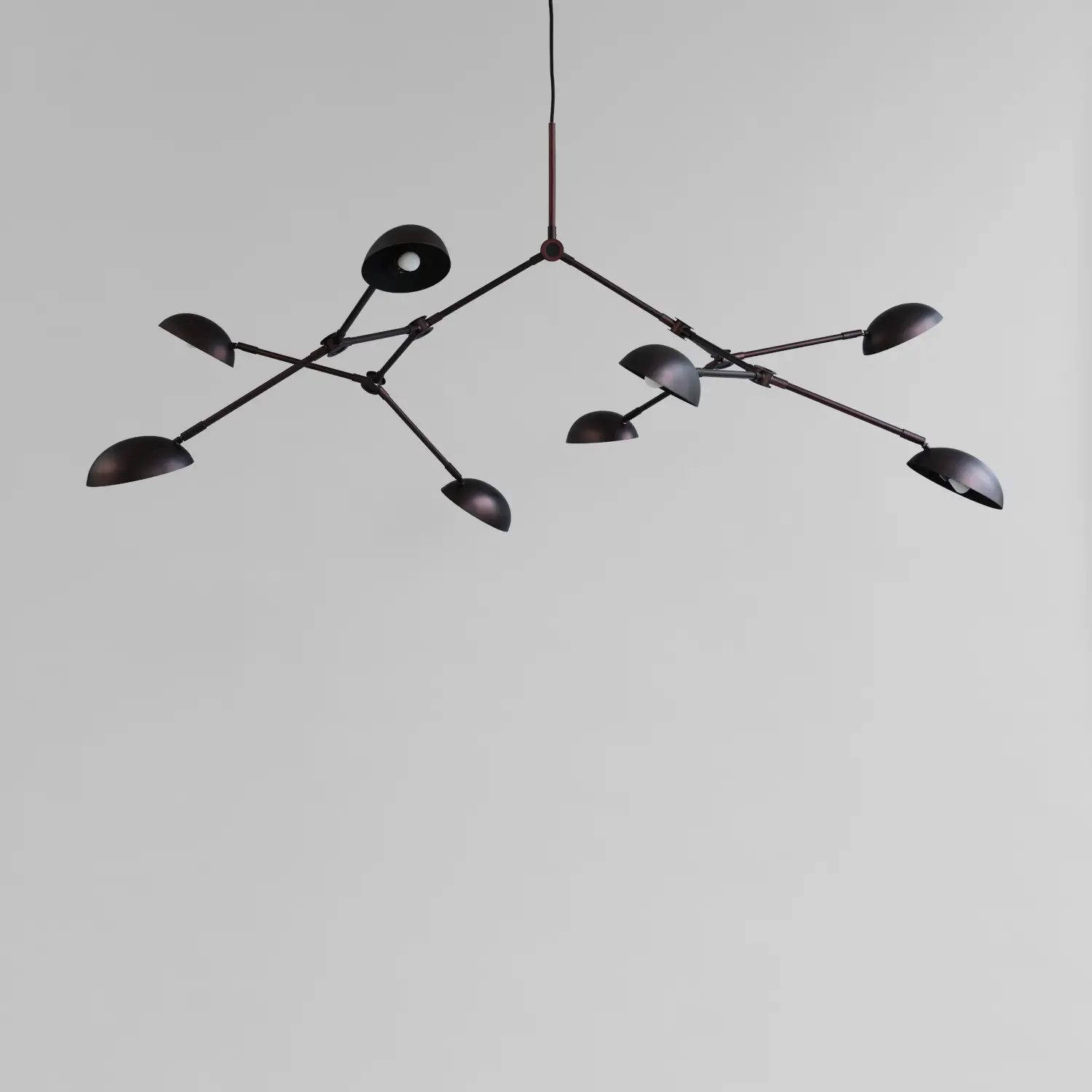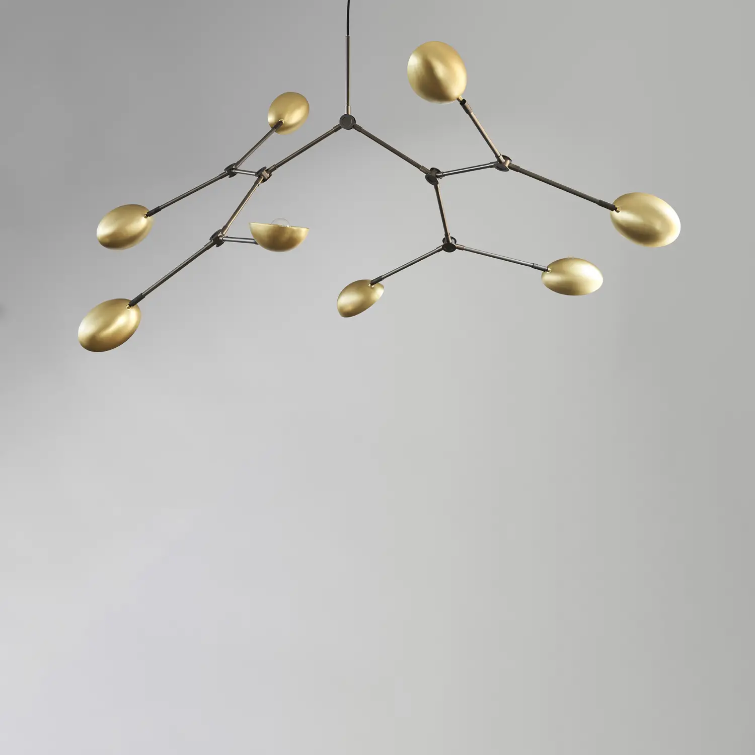 La collection Drop Chandelier honore les designs de lampes modernistes des années 1950, elle célèbre également une approche expérimentale et innovante avec ses formes légèrement incurvées et ses 14 bras réglables flexibles, créant d’innombrables options, variations et angles.